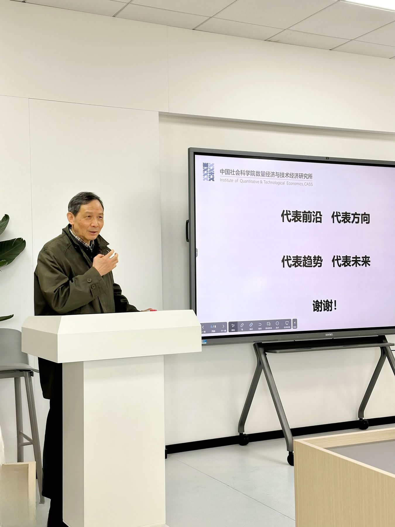 结语中,李海舰教授强调了新质生产力对于中国自主知识体系构建的重要性,并指出其代表了前沿、方向、趋势和未来。他以严谨的框架和深邃的思维,将新质生产力、高质量发展和中国式现代化紧密联系起来,为在座师生提供了一场深刻的学术盛宴。
