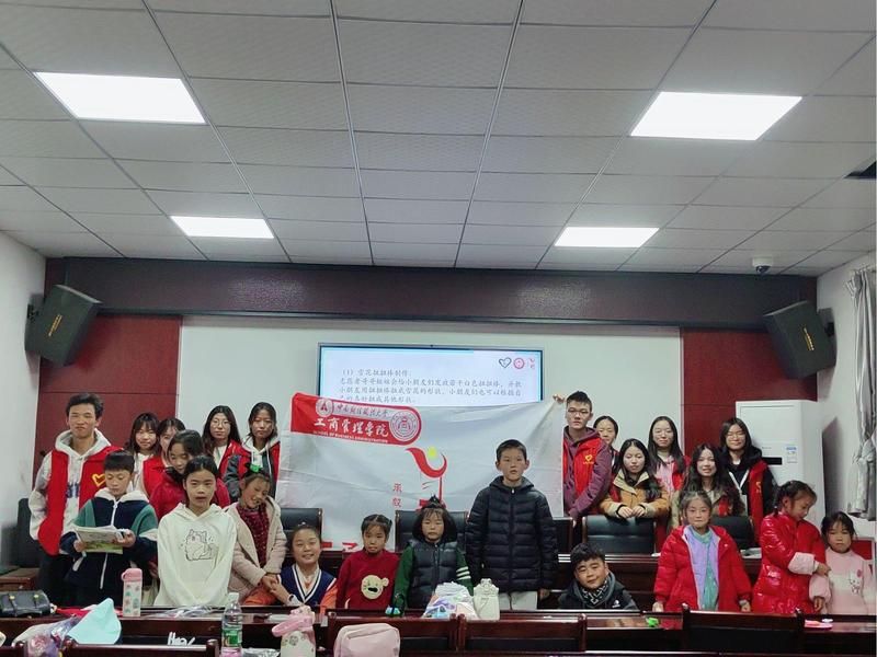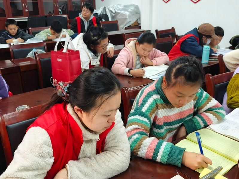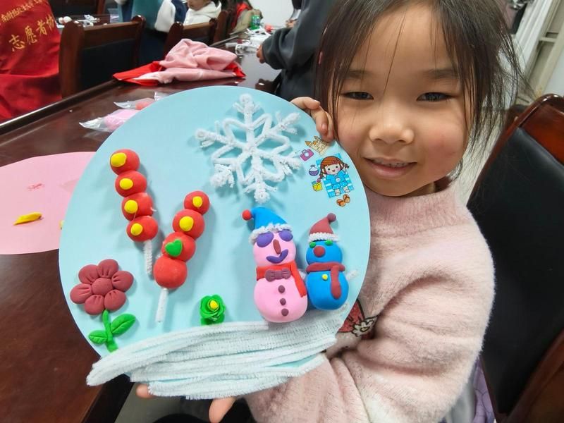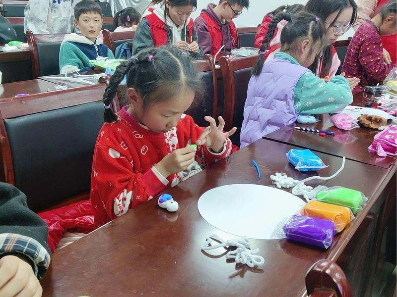 双手绘童趣,稚颜巧争妍。在雪花扭扭棒制作与纸板工艺品制作环节,孩子们化身为小小艺术家,他们根据自己的喜好与想象,创作出了一件件独一无二的作品——在他们的手中,雪花可以五彩斑斓、晶莹剔透;树上可以结出诱人的冰糖葫芦。而后在志愿者的耐心辅导与悉心陪伴下,孩子们认真地完成着作业,遇到难题时,志愿者们总是耐心讲解、举一反三,帮助孩子们深入理解知识点、掌握解题方法。这样的互动与交流,不仅让孩子们在学业上取得了进步,更让他们感受到了来自社会的关爱、尊重与理解。