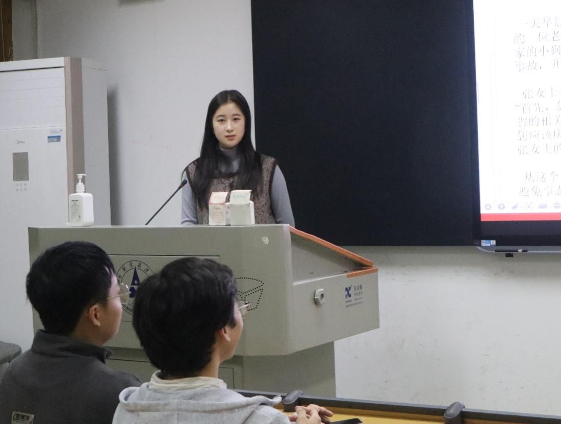“树立文明诚信考风,杜绝违纪舞弊行为”。接着,潘俊颐老师上台发言,她强调了关于诚信考试的重要性,引导同学们端正考风,严肃考纪,提醒大家合理规划复习时间,为即将到来的期末考试做好充分准备。同时,潘俊颐老师结合近期诈骗案例,向大家普及了诈骗手段,帮助同学们增强防诈意识,保护好个人安全。