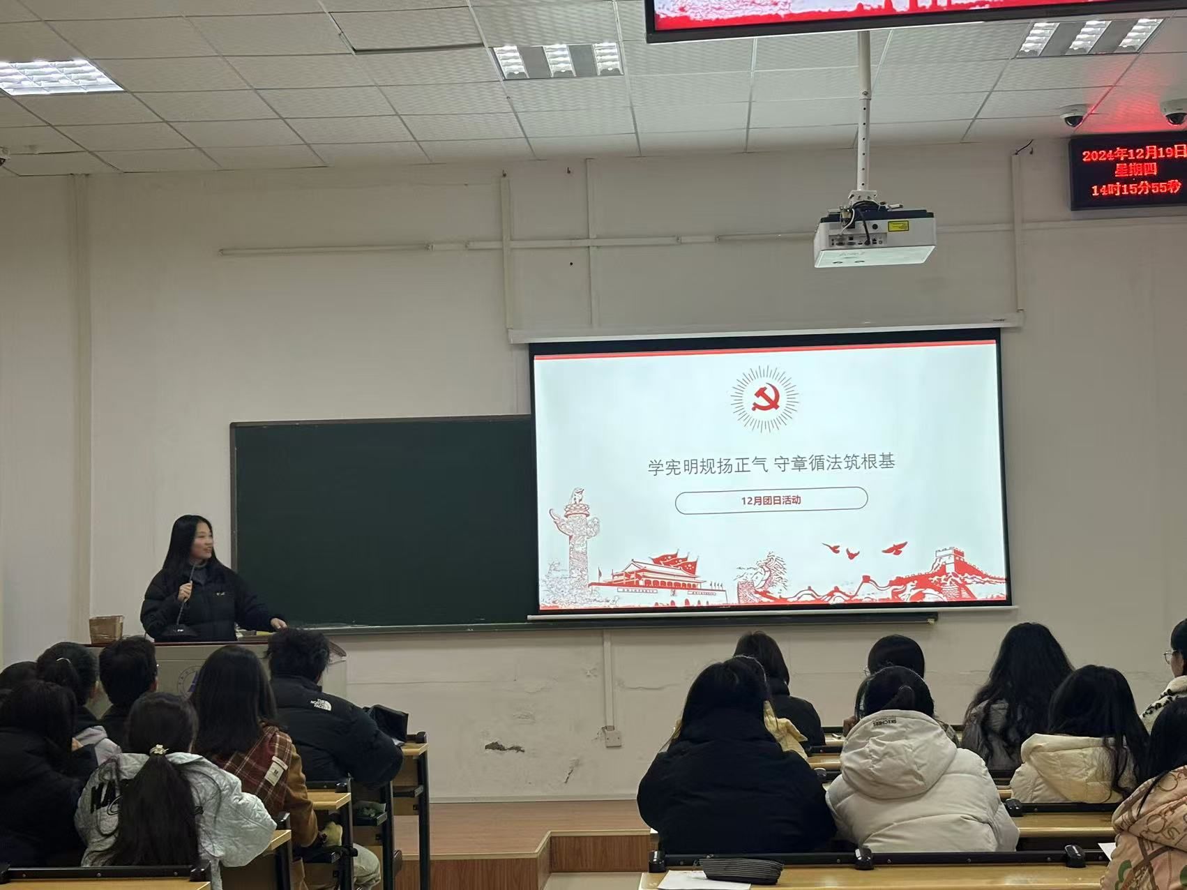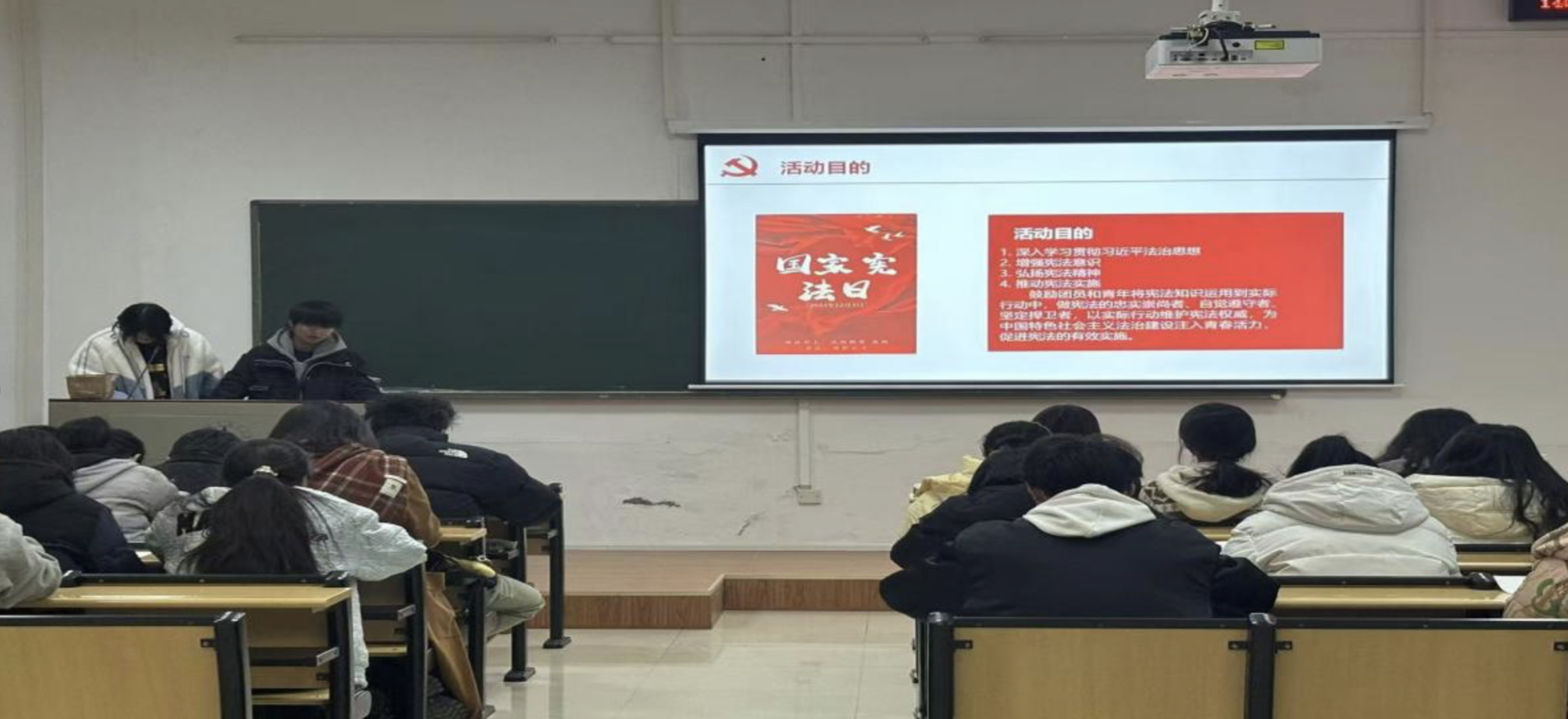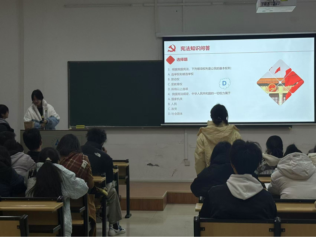 (通讯员 邓淑仪)冬寒料峭,风雪凛冽。今年的12月4日是我国第十个宪法日。在法治社会的宏大叙事中,宪法宛如一颗璀璨的启明星,引领着国家治理与公民生活的方向。为了让同学们更全面地了解宪法主要内容,更深刻地理解宪法重要性,增强其法治意识和责任感,以此为契机,工商管理学院工商管理2405班于12月19日在30号楼102教室举办了十二月团日活动。本次团日活动由工商2405班团支部组织,工商2405班全体成员参与。何陈婧和张亦周主持本次活动。