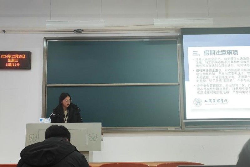 最后,范芳铭同学带领同学们重点关注寒假假期的注意事项,不仅加深了同学们对各类安全隐患的认识,更是增强了有关网络诈骗和遵守宿舍规定等方面的安全意识,提醒同学们无论是居家还是外出,都要时刻保持警惕,注意人身安全和财产安全,在保证假期生活安全的情况下,度过一个充实的假期。