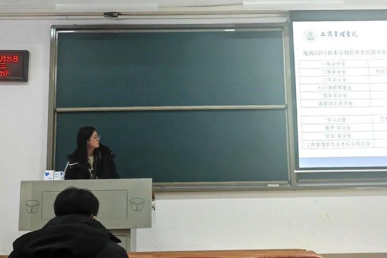 接着,张潇文同学对全体同学进行考前的复习动员,不仅认真分析了班级整体学习情况,提供了多种高效复习的方法,并且提醒大家注意选课的时间安排,在合理规划中完成个人的学分目标。而在考试安排方面,她清晰罗列了各班专业课的期末考试安排,进一步呼吁大家认真备考、诚信作答,提高了同学们对诚信考试的重视程度。