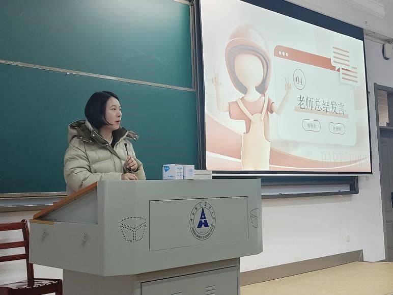 最后,辅导员水晶晶老师和班导师徐浩轩老师进行总结发言,为同学们的未来发展指明方向。他们认真回顾本学期同学们的学习与生活状况,在肯定成绩的同时,也客观指出存在的问题与不足。针对期末考试,老师们鼓励同学们积极备考,充分发挥自身水平;对于未来的学习生活,老师们期望同学们合理规划时间,始终保持积极进取的态度,不断提升自身综合素质。此外,老师们着重强调诚信考试的重要性,要求同学们严格遵守考试纪律,以真实成绩展现学习成果。