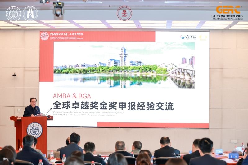 2025年3月7日,第28次全国经管院校能力建设研讨会在重庆大学经济与工商管理学院举行。来自全国的百余位经管学院院长、项目主任和专业负责人等出席了本次研讨会。我院院长兼MBA教育中心主任吴海涛教授、副院长兼MBA教育中心副主任杜鹏教授和国际认证办陈珂老师参加了本次研讨会。此次研讨会上还进行了2025年AMBA&BGA全球商科卓越奖中国院校颁奖仪式,吴院长代表学院现场领取了金奖证书并进行了金奖成果的专题发言。本次研讨会由浙江大学文科资深教授,AMBA&BGA中国区总顾问王重鸣教授主持。
