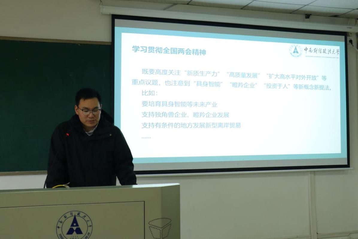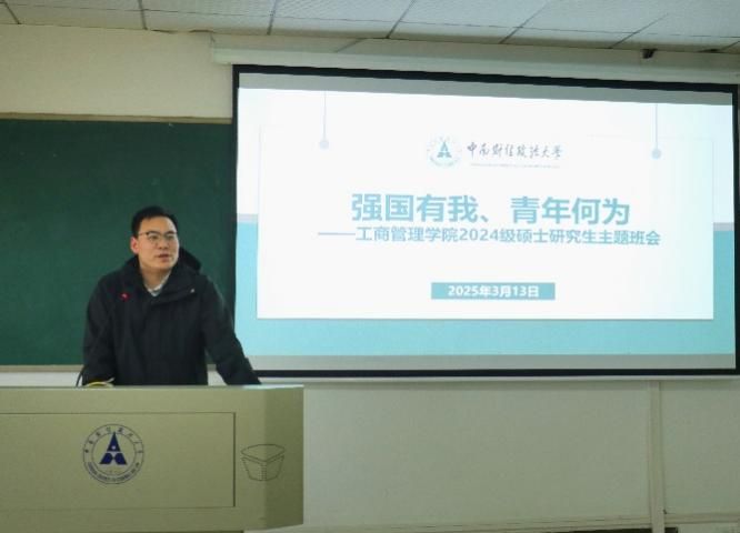 (通讯员:项青 蹇睿 苏彦淳 罗登毅)为深入学习贯彻2025年全国两会精神,全面贯彻落实党的二十大和党的二十届三中全会精神,引导学生明确学习目标、增强安全意识、树立良好学风,2025年3月13日下午2:30,工商管理学院2024级硕士研究生于文添楼203室、501室召开了“强国有我,青春何为”主题班会。此次班会由2024级硕士研究生辅导员江为民、郑如莹老师主持,全体2024级硕士研究生参加。