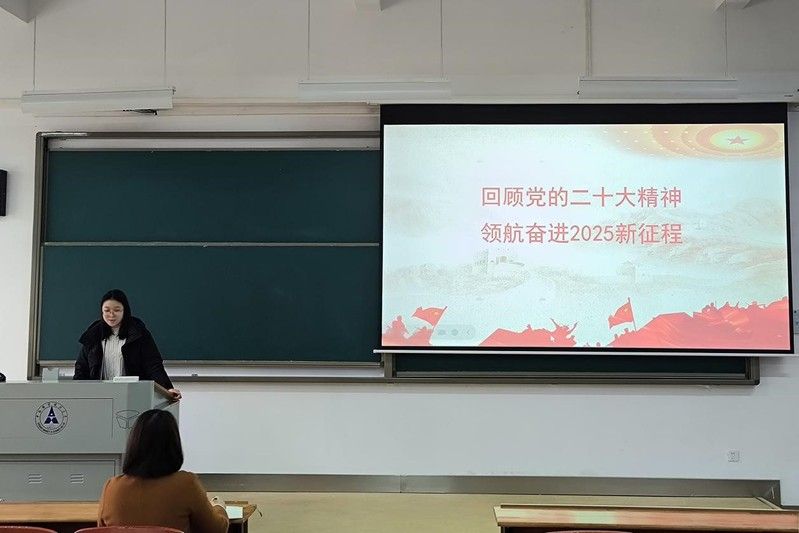接着,工商2201班团支书陆宇涵带领大家进行理论学习,深入解读了党的二十大报告和2025年政府工作报告。通过回顾党的二十大报告要点和解读政府工作报告新词热词,陆宇涵向同学们清晰地传递了二十大报告的精髓以及政府工作报告的重点内容。她强调,同学们应紧跟时政动态,积极了解国家政策与实际案例,并结合这些时事政治进行创新创业分析,紧跟国家发展方向,努力成为一名具有创新精神、实践能力和社会责任感的新时代商科青年。