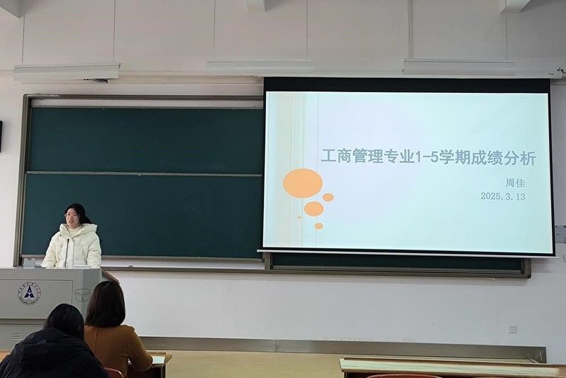 随后,工商2201班学习委员周佳展开了学情分析。她通过具体的数据向同学们展示了上学期各班学习情况,强调了学习态度与成绩的紧密联系。她呼吁同学们在新学期要根据自身情况调整学习策略,提高学习效率,以更加积极主动的姿态迎接学业挑战,共同营造良好的学习氛围,推动班级整体学习水平的提升。