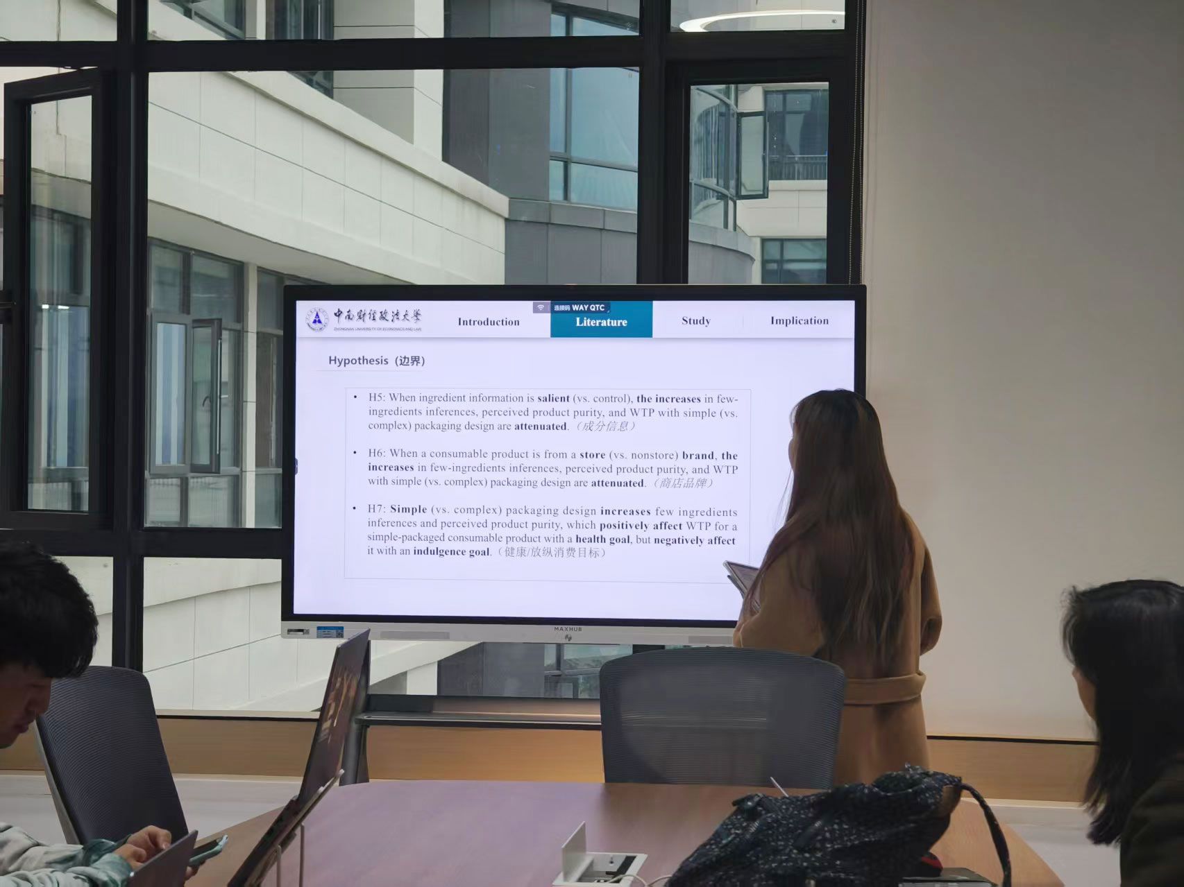 马霓琳同学首先简洁包装来引入主题,介绍了本文的研究主题:简介包装怎么通过整体的视觉元素去影响消费者行为,并详细介绍了本文的研究理论、研究假设的推导机制以及文章的研究模型和5个实验设计,