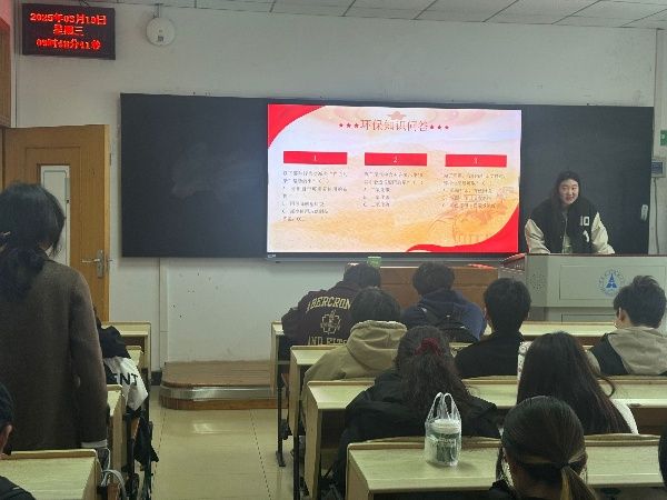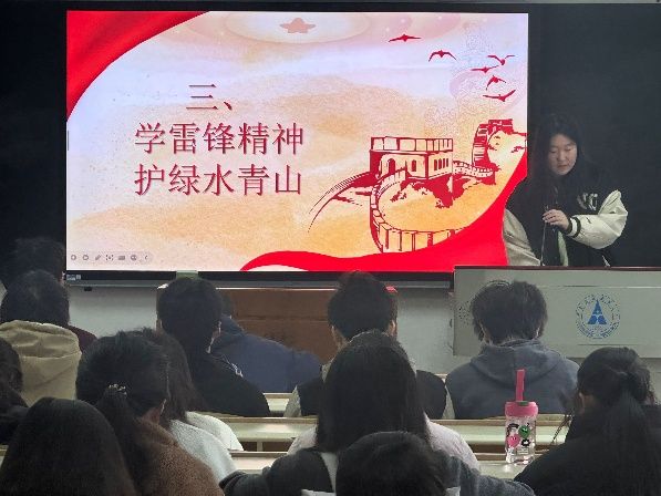 “学雷锋精神,护绿水青山” 陈恩之同学通过播放雷锋事迹纪录片片段、展示环保知识PPT,生动诠释了雷锋精神“无私奉献、服务人民”的时代内涵。在“环保知识问答”环节,同学们踊跃参与,结合垃圾分类、低碳生活等话题展开交流,进一步强化了生态环保意识,收获颇丰。