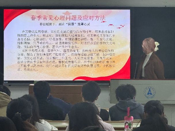 “五育润心,赋能健康成长” 通过精心制作的PPT和科普视频,心理委员王欣怡向同学们讲解了春季常见心理问题的表现及科学应对方法,强调心理健康与全面发展的重要性。活动还设置了互动环节,团员们结合自身经历分享减压技巧,现场气氛轻松融洽。