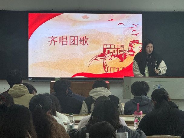 活动在庄严的团歌声中拉开帷幕,全体团员肃立齐唱《光荣啊,中国共青团》,进一步增强了团支部的凝聚力。团员们以饱满的精神状态唱响青春誓言,在激昂的歌声中凝聚奋进力量,彰显新时代青年"请党放心,强国有我"的坚定信念。