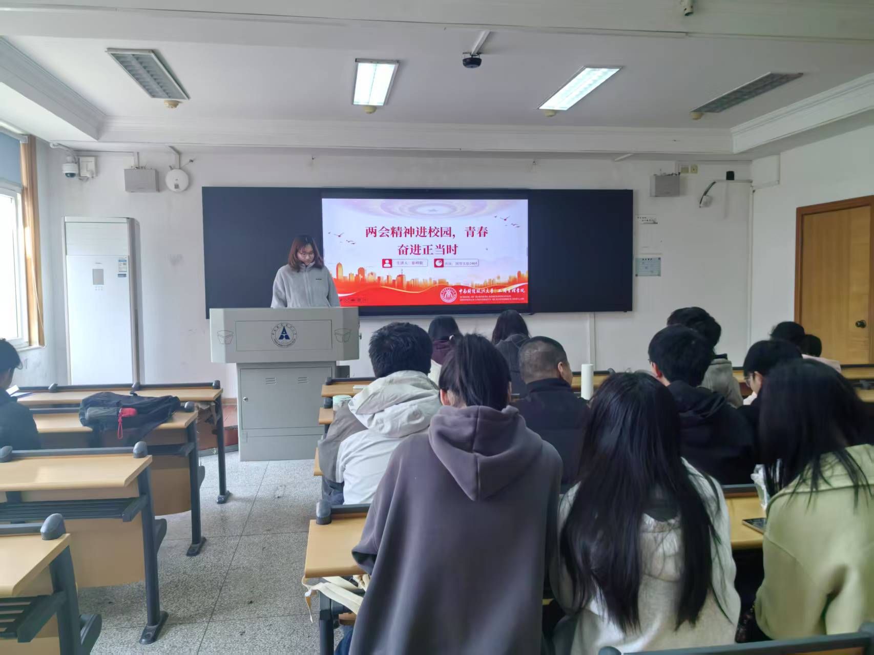 “学习‘两会精神’,激扬青春力量”,该部分也由彭梓歆同学主持。2025年全国两会在北京胜利召开,这是在“十四五”规划收官与“十五五”规划谋篇布局关键节点举行的重要会议 ,不仅全面总结了过往五年的辉煌成就,还精心擘画了未来的宏伟发展蓝图。两会的召开为国家发展指明方向,对科技创新、产业发展、民生保障等各领域提出新目标与新要求。我们作为国家的未来和民族的希望,肩负着时代赋予的重任,此次活动旨在引导学生领会两会精神,激发青春担当,将个人成长融入国家发展中,永作时代奋进者,贡献青春力量。