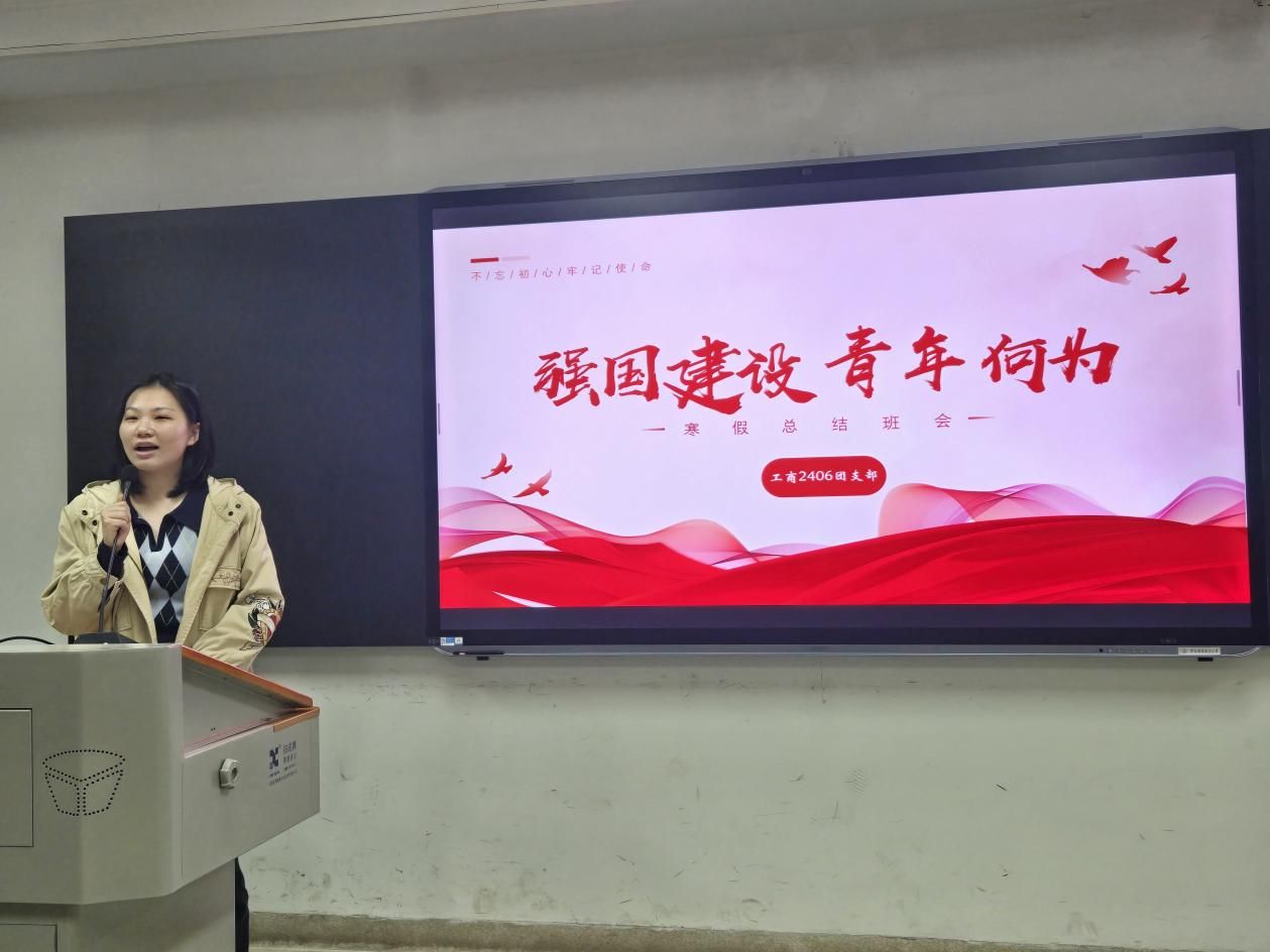 (通讯员 李亭逸)春华初绽,万象更新,新学期携盎然生机翩然而至。工商2406班全体成员于2024年3月21日晚上在文津305教室举行“强国建设,青年何为”主题班会。本次活动由班长张福麟主持,辅导员潘俊颐莅临现场。同学们上台分享大一上学期收获、寒假见闻及下学期展望,彰显了新学期里锐意进取的班级新风貌。