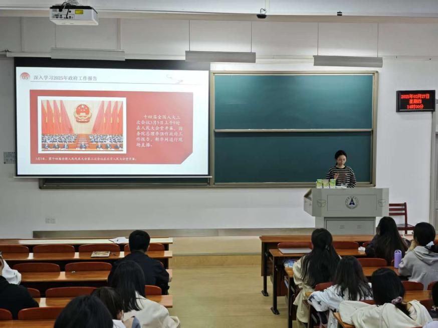 郑玲萍同学随后领学2025年《政府工作报告》,为大家分享了过去一年中国式现代化所迈出的新的坚实步伐,坚定了我们在新时代新征程全面建设社会主义现代化国家的决心和信心。同时也强调我国“稳”的态势巩固延续、“进”的步伐坚实有力,一年来因时因势加强和创新宏观调控,推动经济回升向好。未来当坚定不移全面深化改革扩大开放、大力推动创新驱动发展。