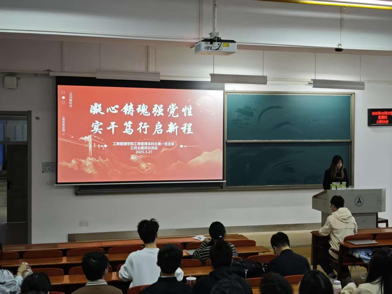 (通讯员:孙韵如)2025年3月27日下午,工商管理本科生第一党支部在南附楼302教室召开“凝心铸魂强党性,实干笃行启新程”3月主题党日活动,工商管理本科生第一党支部全体同学共同参与,支部书记何强老师出席本次活动。
