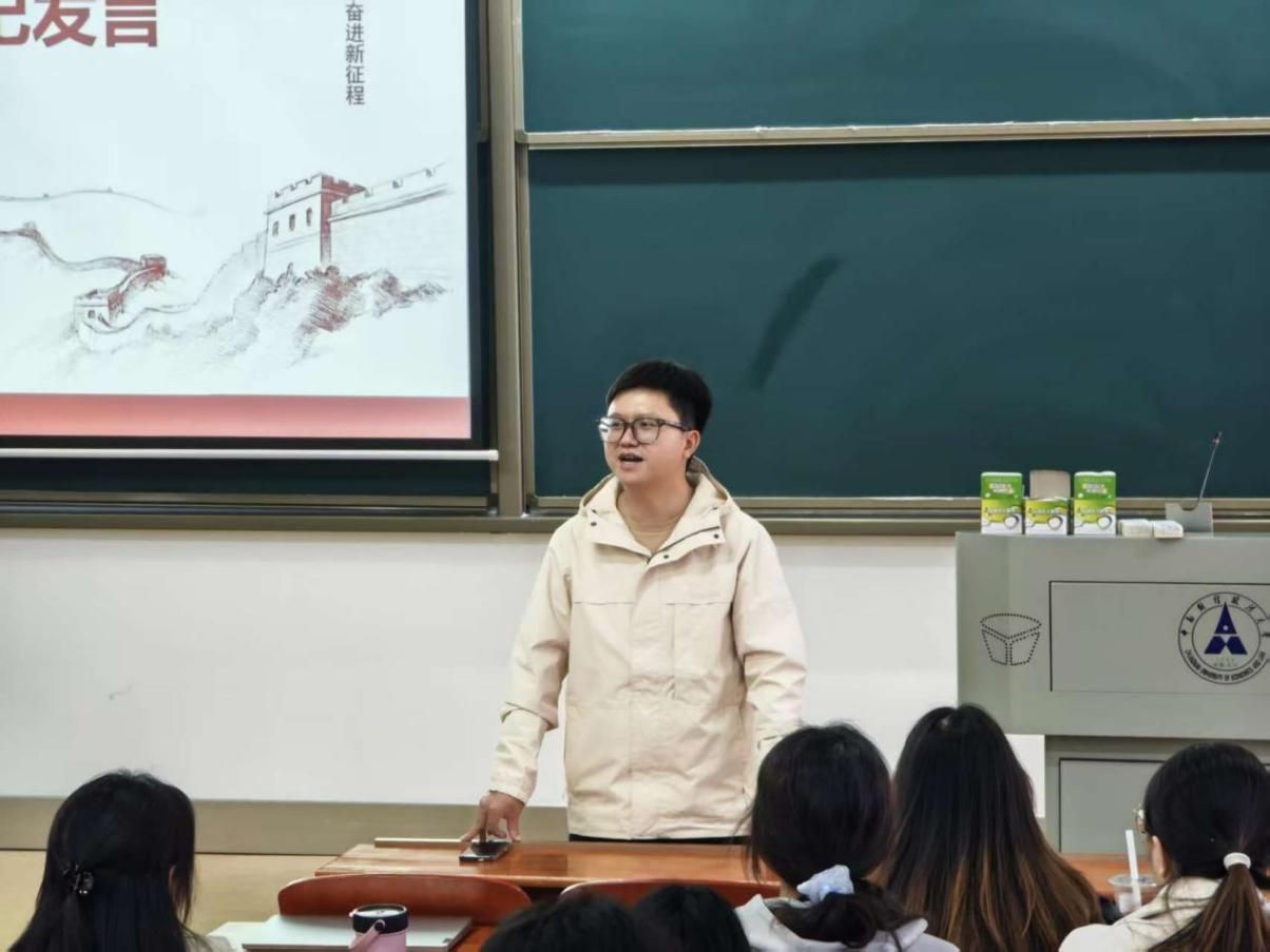 孙韵如同学接着带领大家深入学习贯彻习近平总书记最新讲话和指示精神。围绕《习近平:强化教育对科技和人才支撑作用 形成人才辈出人尽其才才尽其用生动局面》、《习近平:坚定不移贯彻总体国家安全观 把平安中国建设推向更高水平》与大家分享了学习心得,详细解读了习近平总书记重要讲话精神,指出了教育的重要地位以及坚持正确办学方向、深化教育综合改革的重大意义,强调贯彻总体国家安全观的重要性,鼓励同学们培育时代新风,共建平安中国。