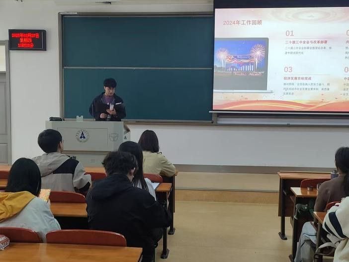 回首过去,继往开来。领学人葛兆钧向支部成员分享了《2025年政府工作报告(摘要)》,总结了2024年党和国家的工作内容,表示我国始终保持“稳”的态势,“进”的步伐坚实有力,并以此提出2025年预期工作目标,需要因地制宜发展新质生产力,加快建设现代化产业体系。