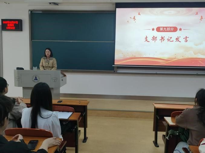 最后,支部书记水晶晶老师总结发言,她对党支部全体成员提出三点要求,一是要迅速调整状态,适应新组建支部的管理制度。二是党员同学时刻牢记使命,努力学习党的理论知识,提高政治素养,积极参加党支部的活动,发挥先锋模范作用。三是支部内部加强互助互学,齐心协力打造学习型、互助型党支部。
