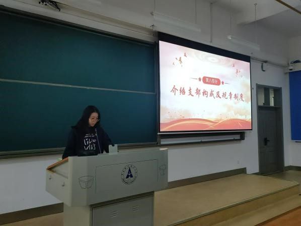 支部副书记陆宇涵详细介绍了本科生党总支纵向党支部划分的具体情况,对第二支部的人员构成,工作分工,党小组划分等情况进行了说明,为日后开展丰富多元的支部活动理清了组织脉络,促进成员之间紧密交流。吴曦同学强调了党费交纳的流程,明确了每月交纳党费的步骤。