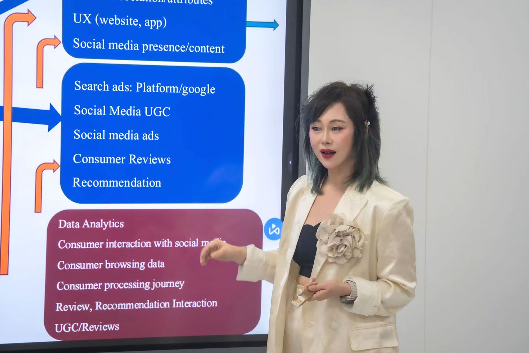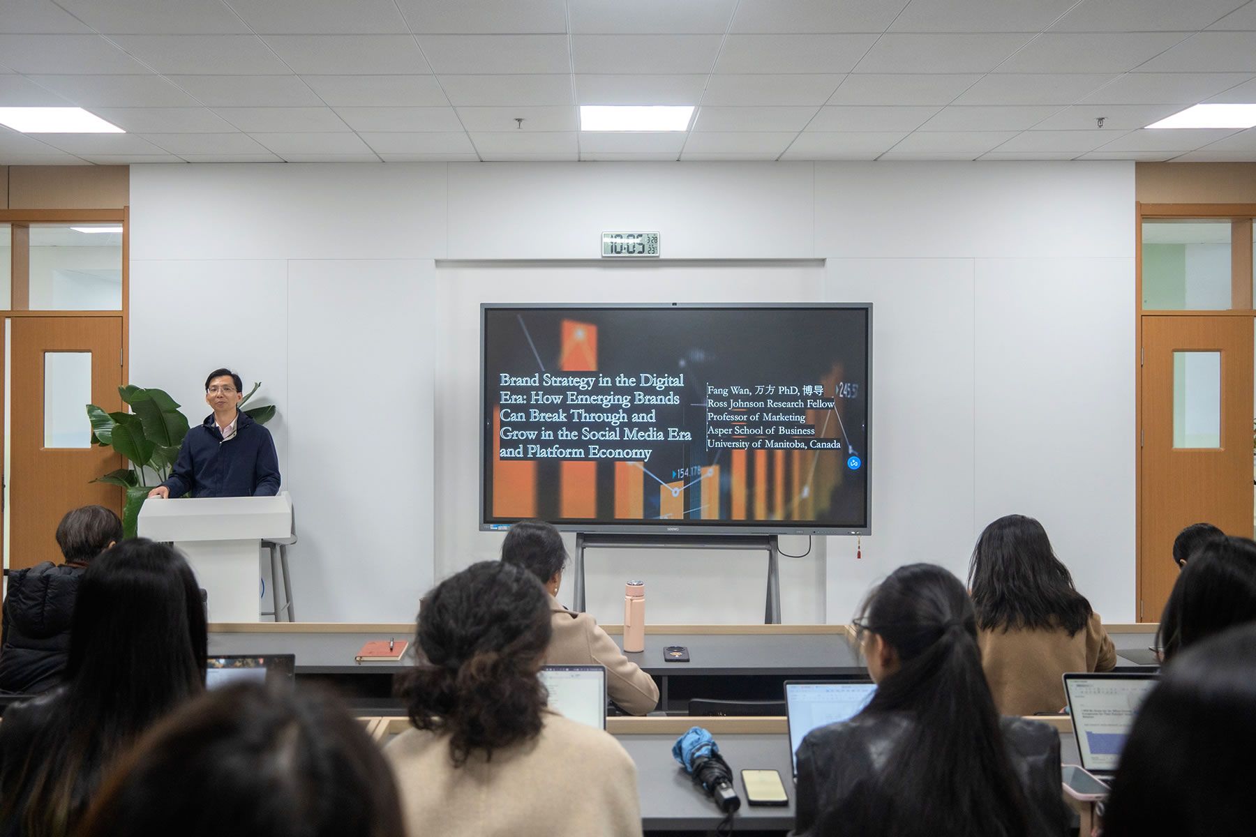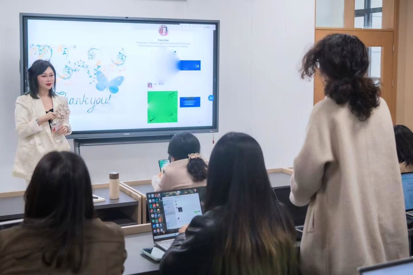 新兴品牌如何在社交媒体时代和平台经济中突破成长”学术讲座在文瀚楼东601会议室圆满举行。该学术讲座为女性领导力中心创办的“她智汇”系列讲座首期,“她智汇”讲座旨在邀请国内外优秀女性学者、企业管理者、创业者进行专业的分享,以全球女性智慧力量赋能学科建设和人才培养。本期讲座特邀加拿大曼尼托巴大学终身正教授、国际知名品牌管理与消费者行为研究专家万方教授担任主讲,费显政教授担任主持人,学院教师和研究生近四十人参与。