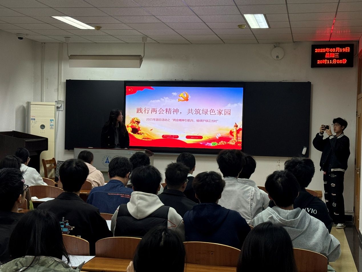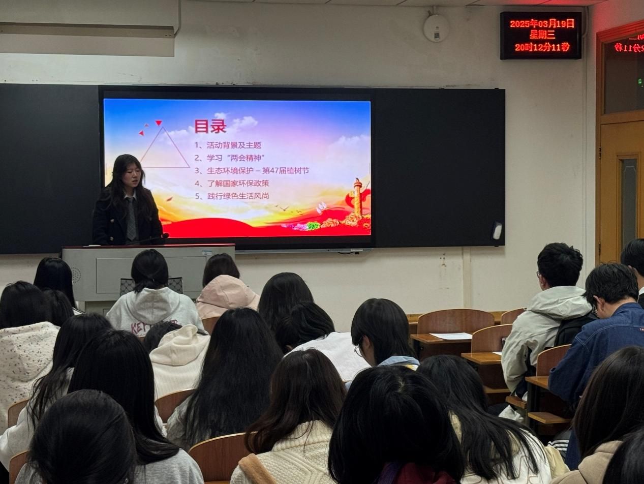 (通讯员 陈晨)山河锦绣映初心,昂首阔步开新章。为深入学习贯彻习近平总书记在全国两会期间的重要讲话精神,工商2405团支部于3月19日晚在文润楼211教室组织开展了主题团日活动。值此第四十七届植树节之际,支部通过理论学习与实践教育相结合的方式,引导青年学子深刻领会生态文明建设的重要意义,活动取得良好成效。