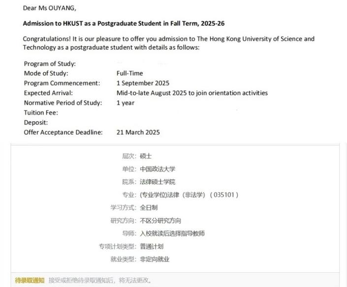 升学方面,旅游管理专业的学子们以扎实的专业基础、优异的成绩和出色的综合素质,赢得了国内外顶尖高校的青睐,升学成果令人瞩目。王佳琦保送至中国政法大学;李佳美考研至中山大学,罗晓宇、陈卓异、李京都考研至中南财经政法大学;欧阳琳琳斩获香港科技大学Offer。据该班班级导师张大鹏副教授介绍,还有部分同学正在申请香港理工大学等知名高校,录取希望非常大。