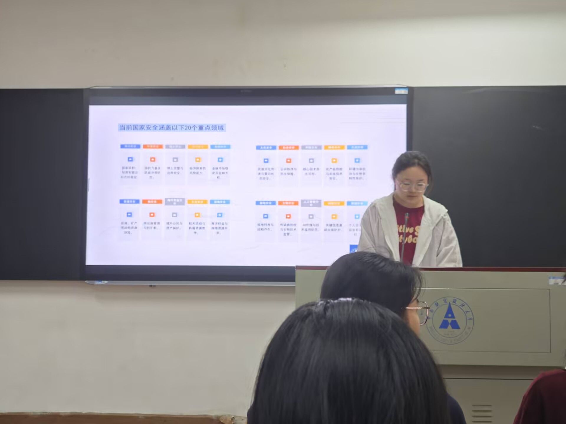 “屏障全民筑,家国万众安”,贺蓉蓉介绍:“国家安全是国家生存发展的基石。在复杂多变的国际形势下,传统安全威胁与非传统安全威胁相互交织。从领土主权争端到网络空间的无硝烟战争。从恐怖主义的威胁到重大公共卫生事件的冲击,国家安全面临着前所未有的挑战。每一位公民都是国家安全的守护者,青年更是其中的重要力量。青年富有朝气与活力,思维敏捷,接受新事物能力强,能够在维护国家安全的各个领域发挥独特作用。无论是投身国防事业,保家卫国;还是在日常生活中,增强安全意识,防范安全风险,青年都责无旁贷。”通过本次团日活动,同学们深刻认识到国家安全的重要性,同时,她也鼓励大家积极参与到维护国家安全的行动中来,从自身做起,从身边小事做起,构筑起坚不可摧的国家安全屏障。