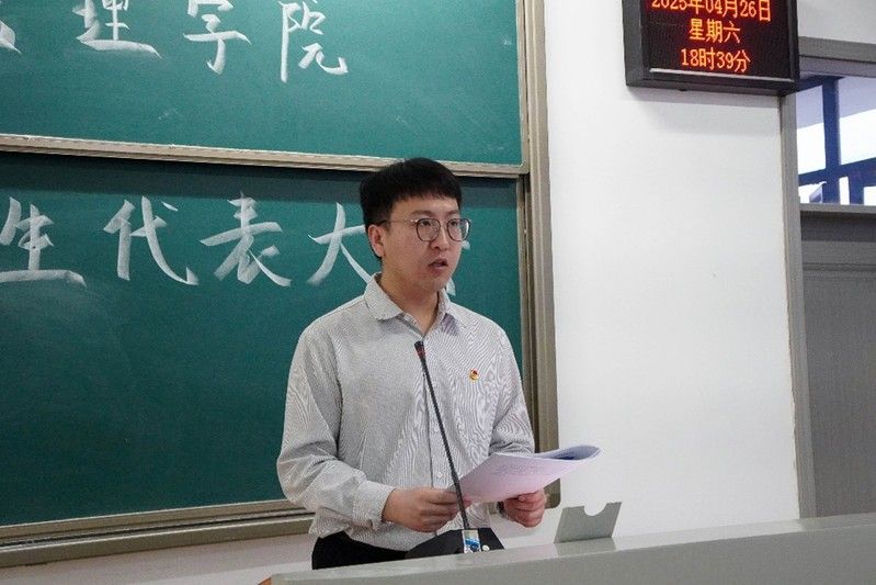 刘振兴老师宣读《米兰电竞·(中国区)工商管理学院第十一次学生代表大会选举办法(草案)》,获得一致通过。