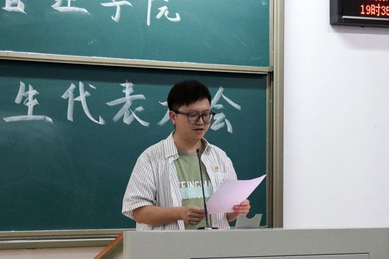 记者 邓灵慧 程美珑 摄影 张夏菡 罗欢)4月26日晚,工商管理学院第十一次学生代表大会在南湖校区文澴楼召开,工商管理学院党委副书记尼加提·艾买提老师,工商管理学院团委书记何强老师,团委副书记刘振兴老师出席本次大会,校学生会主席团成员庄晨晗,学院第27届团学志主要团学骨干与学生代表共同参会。