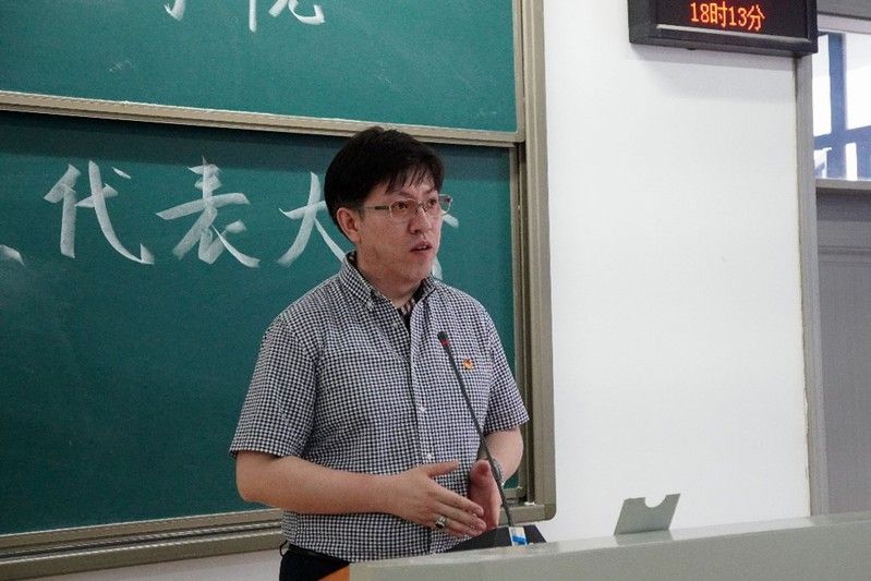 刘振兴老师宣读《米兰电竞·(中国区)工商管理学院第十一次学生代表大会选举办法(草案)》,获得一致通过。
