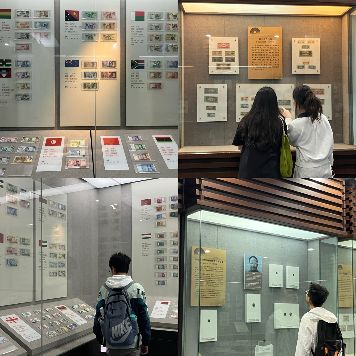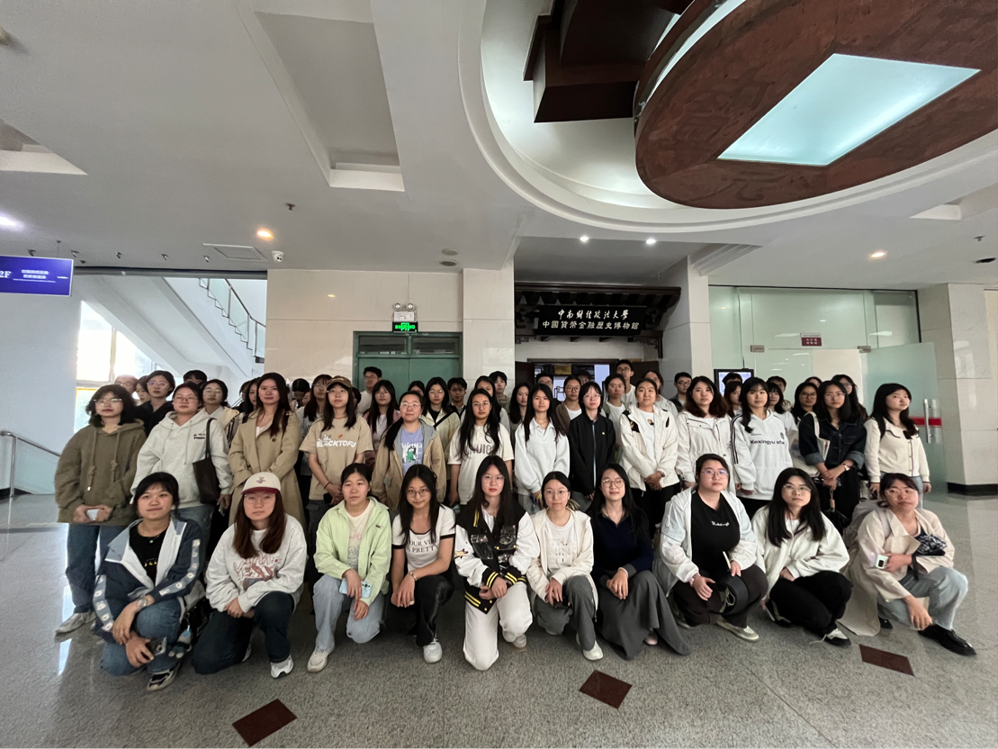 同学们依次参观了“中国古代货币”“近现代金融”“红色金融史”等展厅。从商周贝币、战国刀布到唐宋金银锭、明清纸币,丰富的展品勾勒出中华货币文明的千年脉络;革命根据地发行的纸币、边区银行账册、解放战争金融政策文件等珍贵文物,则生动展现了中国共产党以金融为武器保障军民供给、巩固政权的壮阔历程。镇馆之宝“泰昌通宝折五”钱币与“‘一带一路’货币展”中丝路古币与数字人民币的对比,更让学子深刻体会到“金融为民”理念的传承与国家发展的紧密联系。