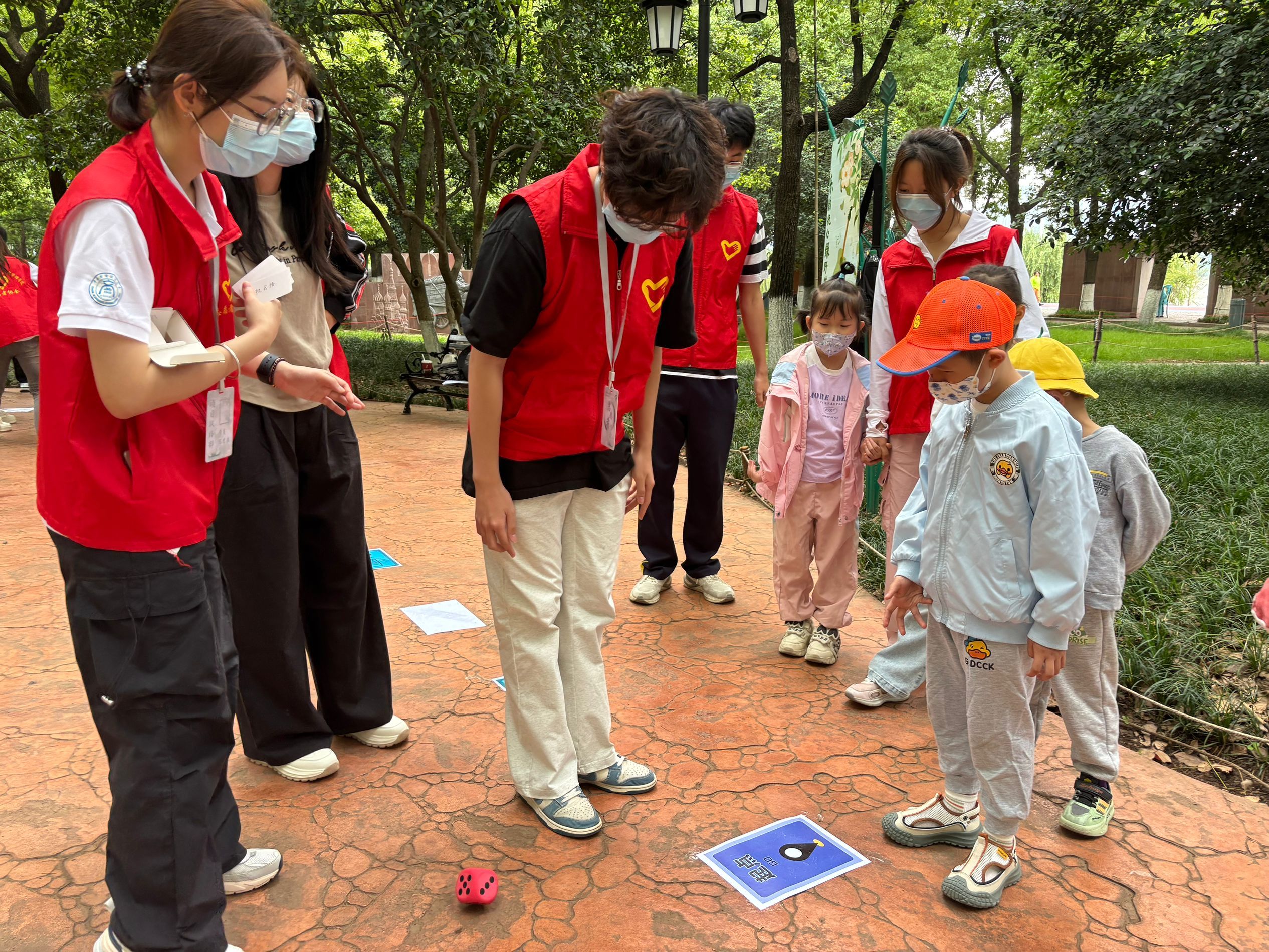 真人“大富翁”,携手绘彩虹。随后,“真人大富翁”游戏将活动推向高潮。孩子们三两成组,在志愿者的引导下掷骰前行。棋盘上的“任务格”、“机会格”和“命运格”充满挑战,一位小男孩抽到“分享一件让你感动的事”,他认真讲述妈妈长久以来对自己治疗的付出,妈妈举着手机记录的手微微颤抖,眼眶慢慢泛红。其中最令人期待的是“彩虹桥”任务——当孩子们首次抵达起点时,要先玩一场特别的捉迷藏。口罩阻挡不了孩子们前进的步伐,他们兴奋地寻找着藏匿于四周的志愿者。志愿者被一个个地找到,彩虹桥也被一条条地解锁,彩虹桥尽头,孩子们的笑容璀璨而纯净。