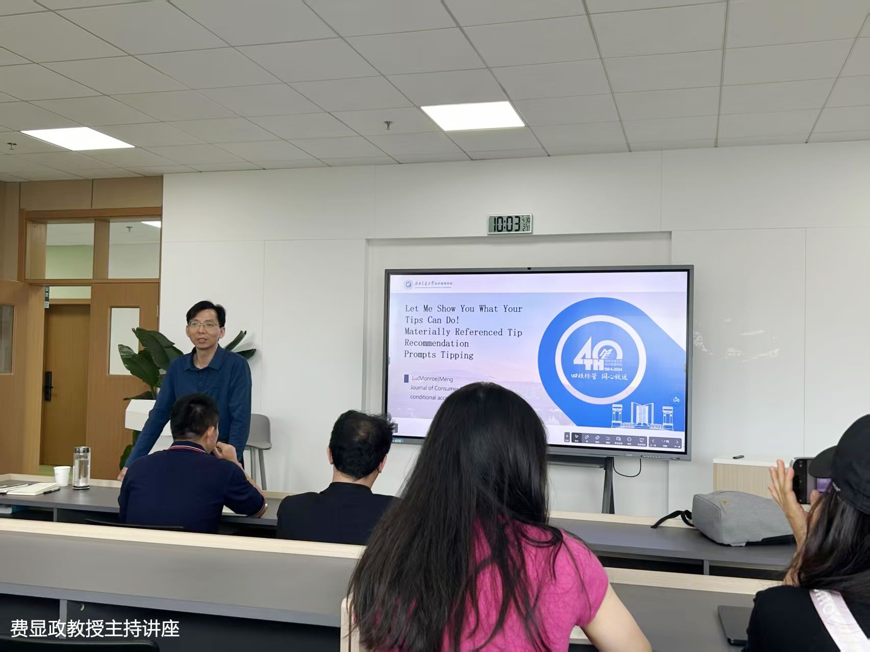 讲座中,孟陆教授基于对一个大规模数据集(176,237 笔外卖餐订单)的分析以及九项实验,揭示一种有效且易于实施的小费推荐设计--实质性的参考小费推荐(即展示与建议的小费金额在财务上相当的产品)--会促使小费的支付。实质性的参考小费推荐的效果依次受到关于小费接受者如何使用这笔钱的生动想象以及小费作为一种向小费接受者表达感激之情的有意义表达的增强感知的影响,而当所参考的产品不太适合向小费接受者表达感激之情时,这种效果就会减弱。在互动环节,与会者就替代性解释、实验设计、