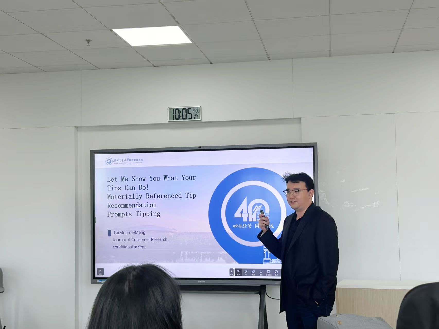 【通讯员:段珅】2025年4月30日上午10点,米兰电竞·(中国区)工商管理学院“营销管理系学术讲座第140期”在文瀚楼东601教室成功举办。本次讲座特邀西南交通大学孟陆特聘教授担任主讲嘉宾,以“让我向您展示您的打赏能发挥什么作用——基于实物参考的打赏推荐提示”为主题,深入探讨了打赏中的实物参考如何影响消费者打赏。讲座由营销管理系费显政教授主持,吸引了众多师生积极参与。