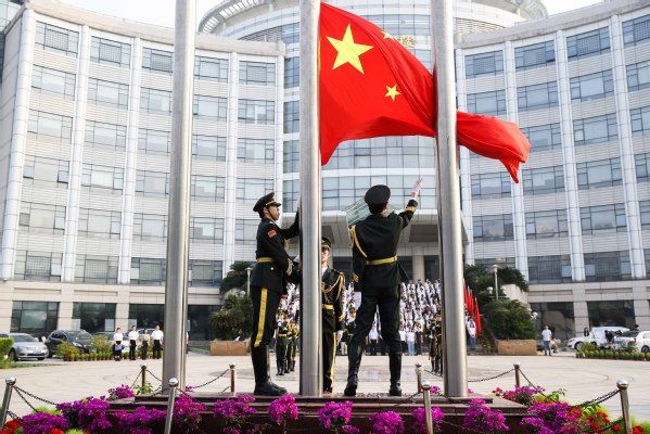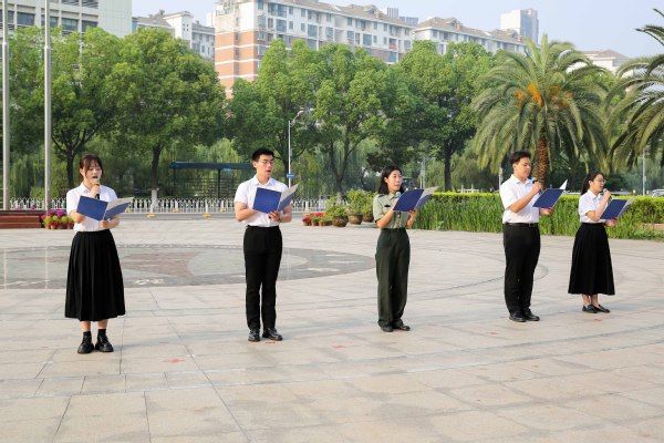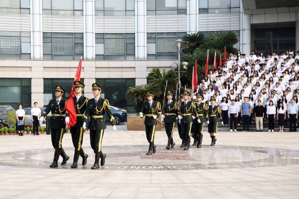 护旗铿锵踏晨曦,青春力量共凝聚。当铿锵有力的口号声划破长空,英姿飒爽的国旗护卫队迈着坚定步伐,肩扛鲜红国旗,以整齐划一的动作行至升旗台前。《义勇军进行曲》激昂奏响,升旗手振臂一挥,五星红旗迎风展开,伴着初升朝阳徐徐攀升。全体师生高唱国歌,注目行礼,声浪如潮令人心潮澎湃,目光如炬尽显爱国之情。