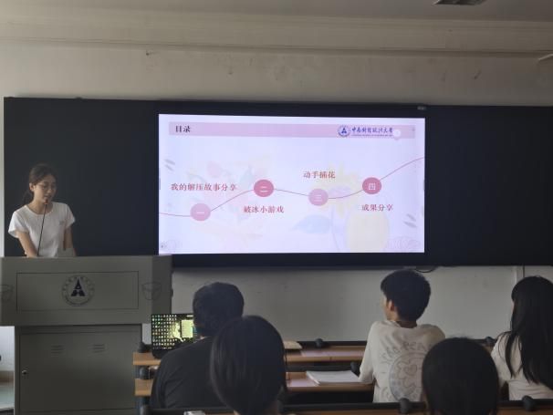 在张晴同学主持的“我的解压故事分享”环节中,同学们坦诚交流各自的减压“独家秘方”:有人借音乐旋律抚慰焦虑,在音符流动中重拾内心平静;有人通过游戏世界短暂抽离现实,在虚拟挑战中释放情绪;有人选择舞蹈律动,以身体语言表达隐秘心事;更有人沉浸于小说情节,在他人故事里寻找情感共鸣。现场氛围轻松热烈,不同解压方式的碰撞,为同学们提供了多样化的心理调节思路。
