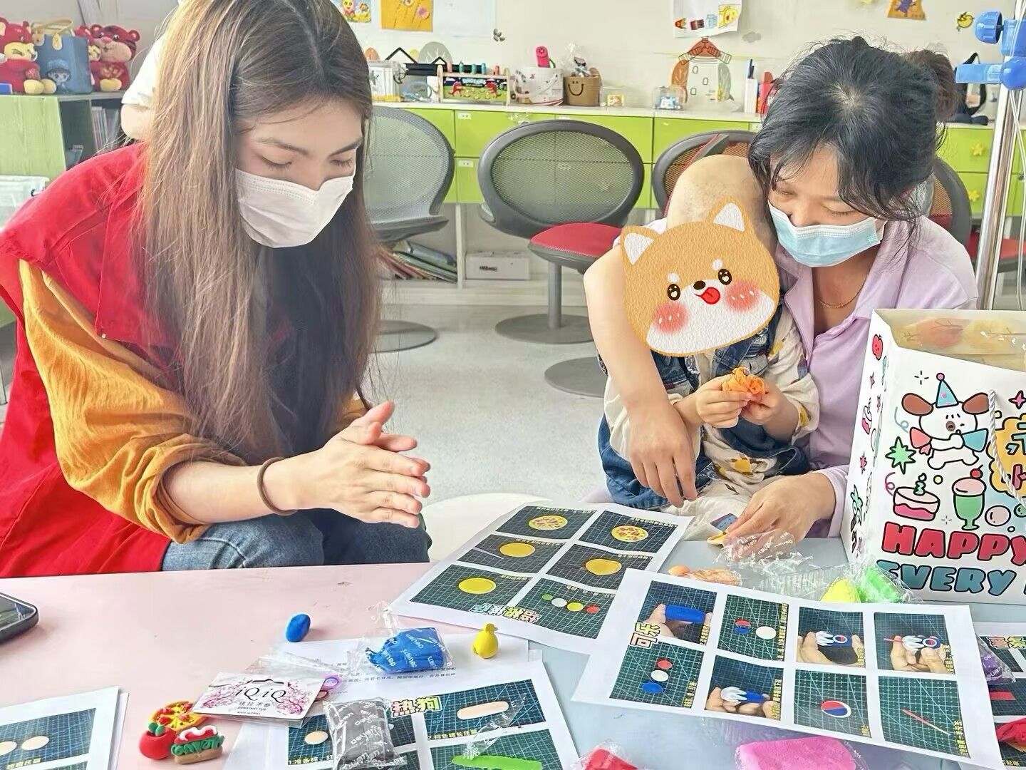 别类寻珍探食韵,塑形展艺绘食光。随后进行的“美食分分类”活动,则是引导孩子们将美食按照主食、菜肴、甜品等类别进行划分。一个小女孩虽然因为治疗显得比同龄人瘦小,却是个不折不扣的“小学霸”。只见她准确地把所有蔬菜卡片都归到了一起,抬起头,带着腼腆而自豪的笑容说道:“我妈妈说要多吃青菜!”她的认真劲儿感染了其他小朋友,大家都争相展示自己的营养知识。孩子们在志愿者的带领下,不仅加深了对美食的认识,还学会了归纳分类的小知识。而最受孩子们喜爱的当属“指尖食光秀”环节。一个小朋友专心致志地制作着“生日蛋糕”——她把不同颜色的黏土一层层叠起来,还插上了五颜六色的“蜡烛”。“因为我要输液,妈妈连自己的生日都没有过,我要送她一个大蛋糕。”她告诉志愿者说。五彩斑斓的粘土在孩子们手中变换出各种形态,他们还相互展示着自己的作品,欢声笑语回荡在病房的每一个角落。