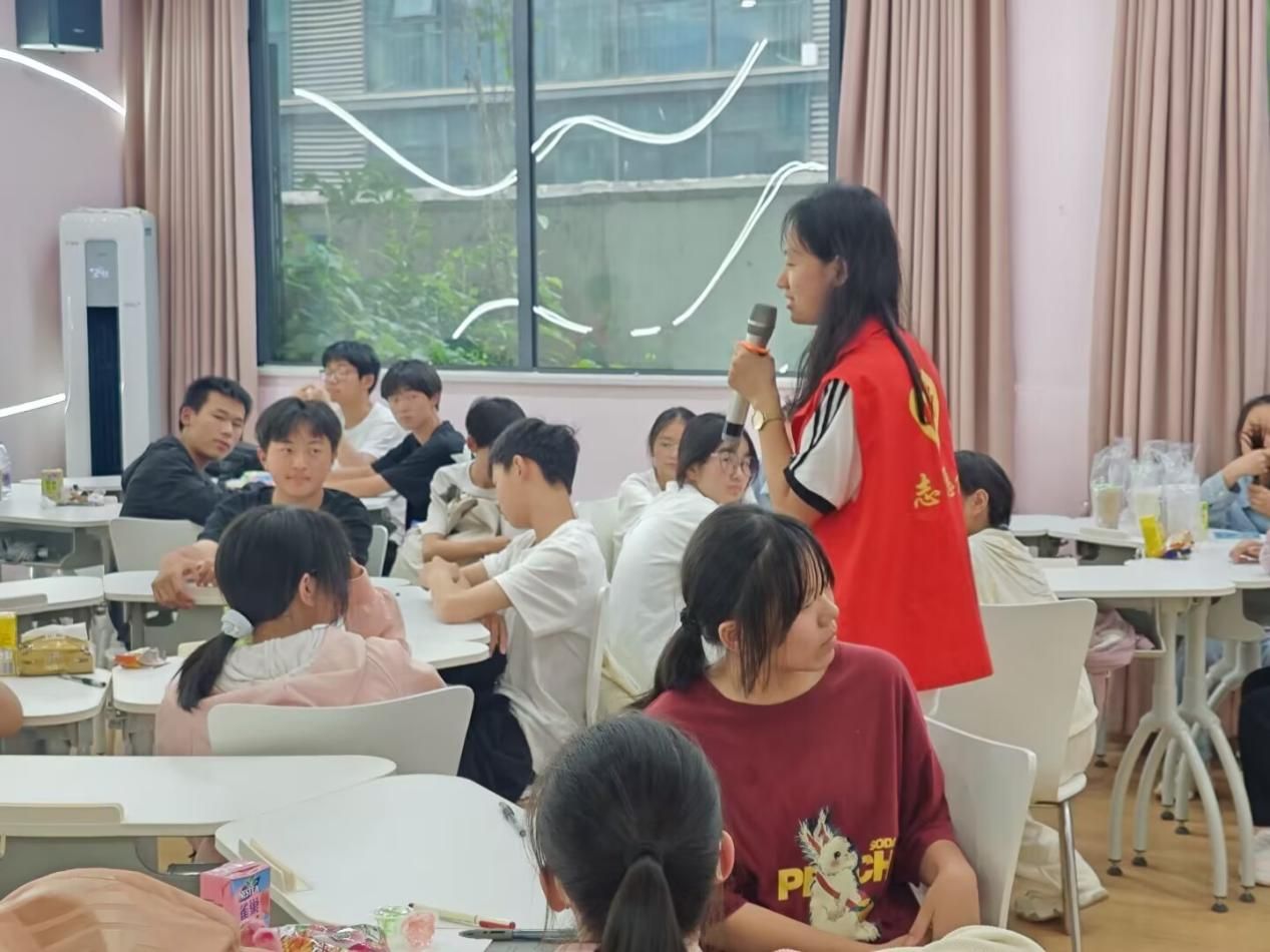 趣意游戏融欢笑,暖心树洞诉心声。走进精心布置的教室,一场充满温情与趣味的班会拉开帷幕。首个游戏“情绪猜猜猜”瞬间点燃现场气氛——第一组成员拿到的情绪词语是开心,每个成员都咧嘴开怀大笑,用笑容传递情绪,一片欢声笑语中,词语也被成功猜出。另有两位男生虽遗憾猜错,却大方接受“惩罚”,背诵了一首《黄鹤楼》。紧接着,“成长情绪树洞”活动上线。志愿者分发空白明信片,鼓励大家匿名写下成长中的烦恼与压力。待明信片收集完毕,大家随机抽取并踊跃分享。志愿者抽到一张写着“害怕上台发言,心跳快到窒息”的明信片,分享时说道:“我第一次演讲也紧张到忘词,多练几次就会发现,大家更在意内容,不用太焦虑。”一句句真诚的建议让每一位涂镇的少年都感受到被理解、被关爱的温暖。