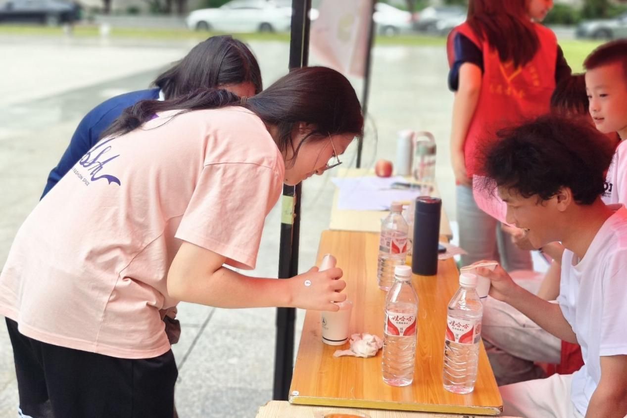 分类投放显智慧,游戏互动添乐趣。活动现场,“垃圾分类投篮”游戏区域热闹非凡。只见同学们手持写有不同垃圾名称的纸条,认真思考后将其投入相应类别的垃圾桶中。其中,一位同学在玩完这个游戏过后兴奋地说:“这种寓教于乐的方式真让人印象深刻!”在“滴水不漏”挑战区,参与者们屏息凝神,轮流将清水倒入透明杯中,周围观众聚精会神地注视着水面高度的变化,现场气氛紧张又欢快。这些趣味游戏不仅让参与者收获了快乐,更让大家对环保有了更深的理解和认识。
