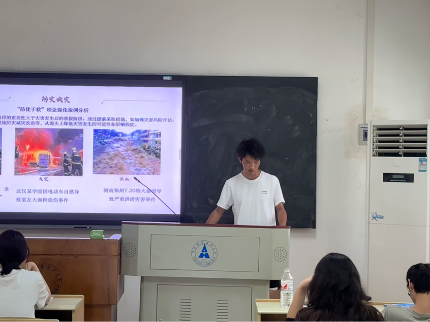“生命护航守初心,防灾减灾显担当” 活动伊始,李宇航同学带领大家围绕“防优于救”的理念展开学习。通过分析武汉某学院电动车自燃事件和四川桑枣中学地震“零伤亡”案例,大家深刻认识到预防灾害的重要性。团支部还组织模拟演练,详细讲解地震、火灾、洪水等突发事件的逃生要领,强化了同学们的安全意识和自救互救能力。大家纷纷表示,要将“人民至上、生命至上”的理念内化于心、外化于行,为构建平安校园和社会贡献力量。