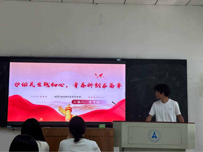 (通讯员 刘佳琳)为深入学习贯彻习近平新时代中国特色社会主义思想,激励青年学子勇担时代使命,5月,经贸2402团支部以“护佑民生践初心,青春科创启篇章”为主题,开展了一场内容丰富、意义深远的团日活动。活动分为“生命护航守初心”“青春立志绽芳华”“创新领航破桎梏”三个篇章,通过案例分析、理论学习和实践探讨,引导同学们筑牢安全防线、扎根基层实践、勇攀科技高峰。