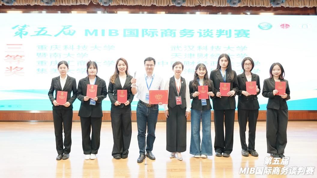 2025年5月17-18日,第五届MIB国际商务谈判赛复赛在上海正式开赛。本届大赛由全国国际商务专业学位研究生教育指导委员会作为指导单位,中国政法大学和上海对外经贸大学联合主办。我院2024级国际商务、国际贸易学专业硕士研究生唐梦晴、姜甜甜、林燕珊、刘欣怡、莫彩艳、闻依然、洪婷、周慧、李欣颖、冯欣雨同学组成的代表队在刘凯副教授和曹亮教授的共同指导下,经过数月的紧张备赛和两天的激烈角逐,最终参赛团队荣获本次大赛团队三等奖。