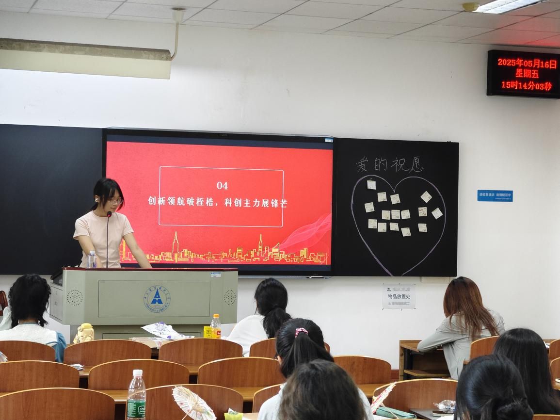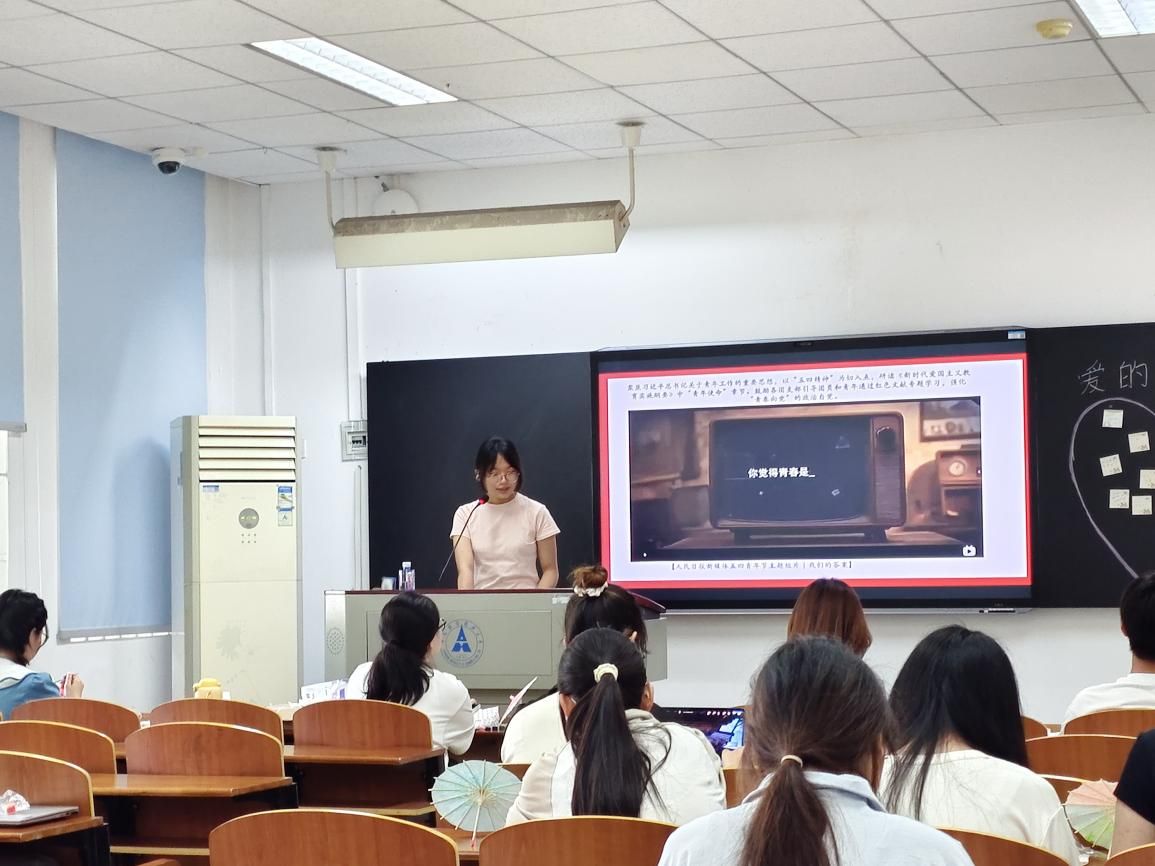 随后,吴诗颖带领同学们观看了人民日报新媒体五四青年节的主题短片,该短片通过展示新时代奋斗者的身影、重大科技突破的瞬间、乡村振兴的蓬勃图景,生动诠释了新时代各个领域的伟大成就与青年在新时代的发展机遇,让同学们深受触动,引发大家强烈共鸣。