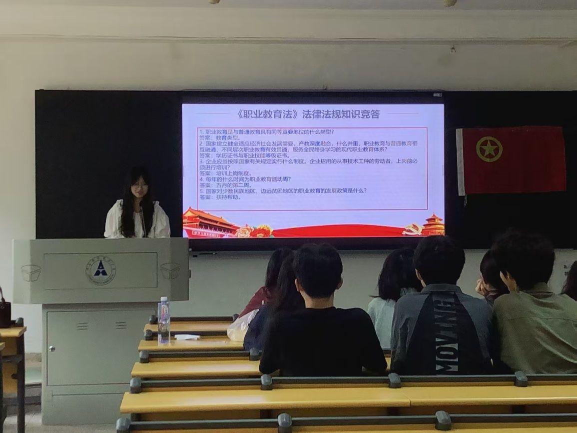 知识问答环节掀起了活动的小高潮。主持人刚抛出问题,同学们便纷纷举手抢答,现场气氛热烈非凡。一道道紧扣理论知识的题目,涵盖了防灾减灾、青年使命、科技创新等多个方面。同学们凭借扎实的学习积累,迅速且准确地给出答案,展现出良好的学习效果。在一次关于科技创新“四个面向”的问答中,一位同学不仅答对了问题,还结合当下科技发展趋势,对其进行了深入解读,赢得了大家的一致称赞。知识接力环节,各小组同学密切配合,将理论知识串联起来。每组同学依次回答问题,不仅考验了个人的知识储备,更考验了团队协作能力。在这个过程中,同学们相互启发、相互补充,进一步加深了对知识的理解和记忆。有的小组在接力中遇到难题,其他小组成员也会在一旁小声提示,现场充满了团结互助的氛围。心得分享环节,同学们纷纷走上讲台,结合自己的生活经历,分享学习理论知识后的感悟。有的同学讲述了自己参与社区志愿服务时,如何运用防灾减灾知识帮助居民解决实际问题;有的同学分享了自己对“强国有我”的理解,表达了要在学习中努力提升自己,为国家科技创新贡献力量的决心。现场交流氛围浓厚,同学们在分享中相互学习、共同成长。