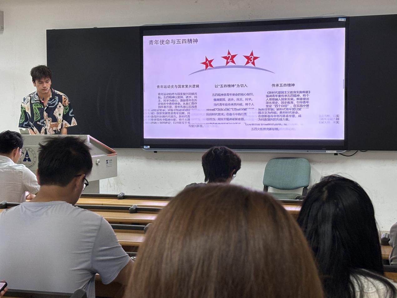 活动第四项围绕“青春立志绽芳华,挺膺担当书新章”展开。主持人聚焦习近平总书记关于青年工作的重要思想,以 “五四精神” 为切入点,领学《新时代爱国主义教育实施纲要》中 “青年使命” 章节,深入解析青年运动史与国家复兴的逻辑关联,强化 “青春向党” 的政治自觉。同时,大家热烈探讨当代青年在乡村振兴、基层治理中的责任担当,筑牢 “强国有我” 的思想根基。