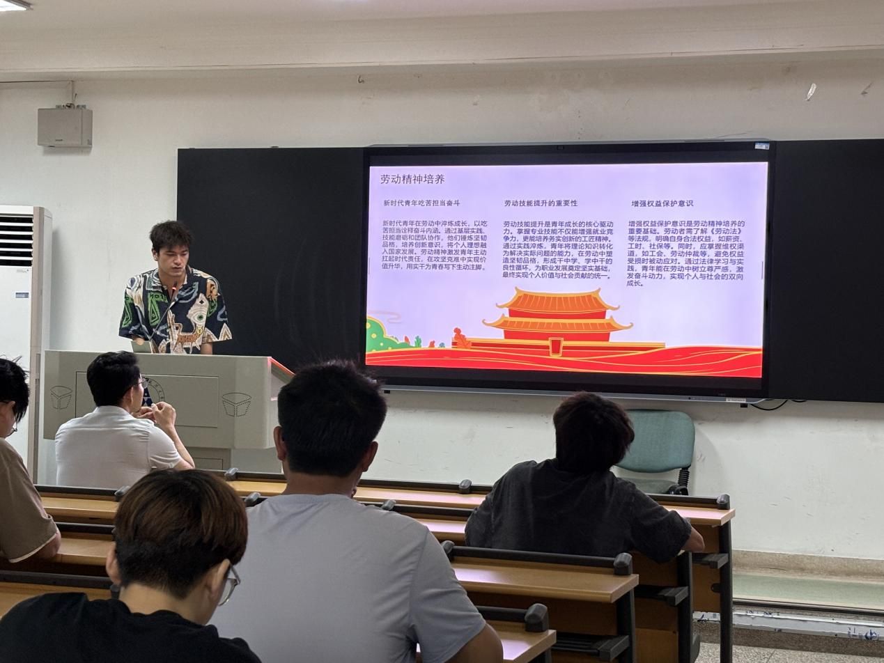 活动第六项围绕“劳动创造幸福,实干成就未来”展开。活动以 “劳动创造美好生活”为结语,号召青年学子以奋斗姿态诠释青春价值。同时,阿卜杜外力同学结合基层劳动故事与创新实践案例进行讲解,强调劳动不仅是技能的磨砺,更是意志的淬炼。