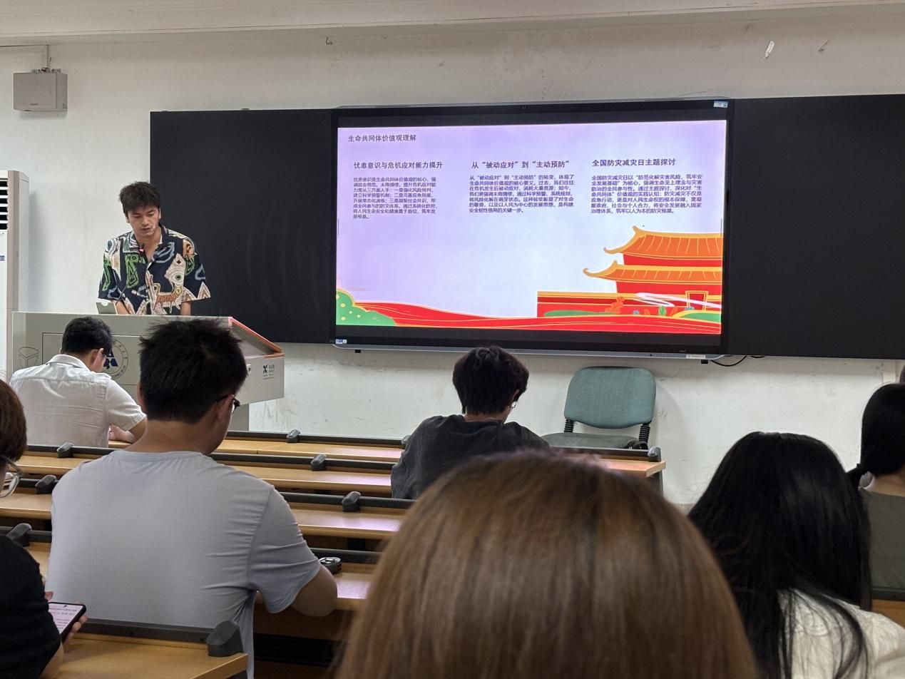 活动第三项围绕“生命护航守初心,人民至上筑根基”展开。活动中,主持人阿卜杜外力以习近平总书记关于 “人民至上、生命至上” 的重要论述为核心,带领我们学习《国家综合防灾减灾规划》及灾害防治体系内涵,深入剖析灾害预防与应急管理政策框架。通过对《防灾减灾安全教育教案》中地震、火灾、洪水等科学避险原理进行介绍的案例研讨,同学们进一步深化了对 “生命共同体” 价值观的理解。