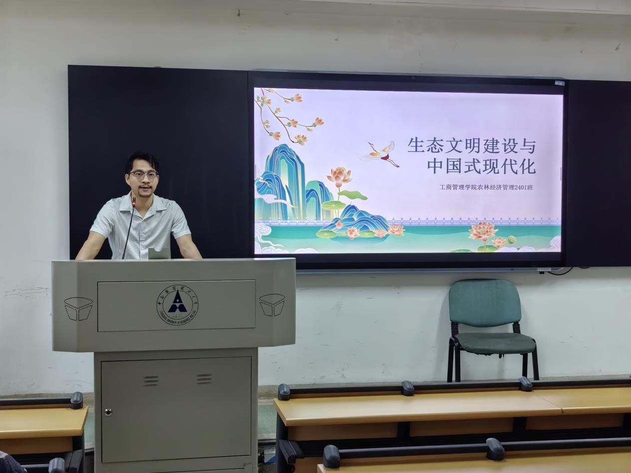 活动第二项围绕“生态文明建设与中国式现代化”展开。梁志会老师以 “生态文明建设与中国式现代化” 为主题,为同学们带来了一场富有深度与启发性的课程。课堂上,梁老师从中国式现代化的本质特征切入,阐述了生态文明建设在其中的重要地位。并分享了自身的一些生活经历。同学们深刻认识到了生态文明建设与现代化发展的内在联系,并决定以实际行动践行绿色发展理念。