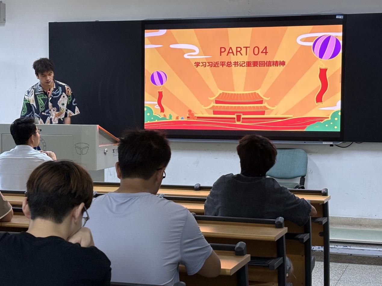 活动第五项,学习习近平总书记重要回信精神。活动现场,主阿卜杜外力持人详细解读了总书记回信中对相关领域工作的殷切期望与重要指示。同学们全神贯注,认真聆听记录。同时,阿卜杜外力同学也分享了一些人物事迹,激励着大家将回信精神转化为实际行动。