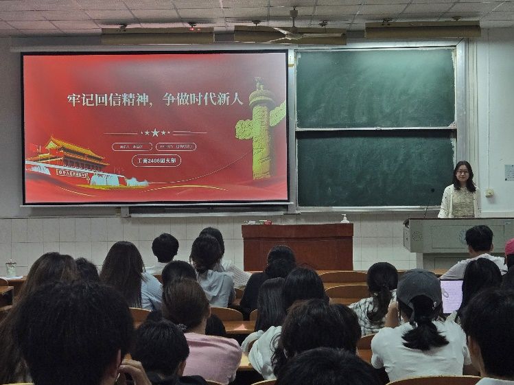 (通讯员 张福麟 摄影 夏凡)为深入学习习近平总书记重要回信精神,引导同学们坚定理想信念,争做有担当的时代新人,5月25日,工商2406团支部在首义文翰楼201召开了“牢记回信精神,争做时代新人”专题学习活动。会议由团支书李佳欣主持,团支部全体同学参加。